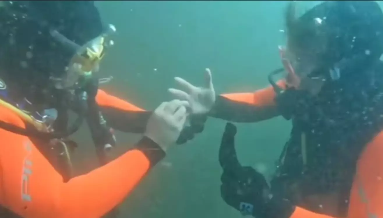 Ayer, una pareja de buzos compartió un momento único bajo el agua. Un grupo de buceadores ayudaron a Jorge Sarmiento a pedirle matrimonio a su pareja Natalia Bertolín mientras buceaban en el Golfo Nuevo.