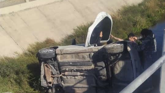 La mujer fue rescatada primero por los vecinos y luego por bomberos que trabajaron en el lugar. El rodado quedó inclinado sobre uno de sus laterales.
